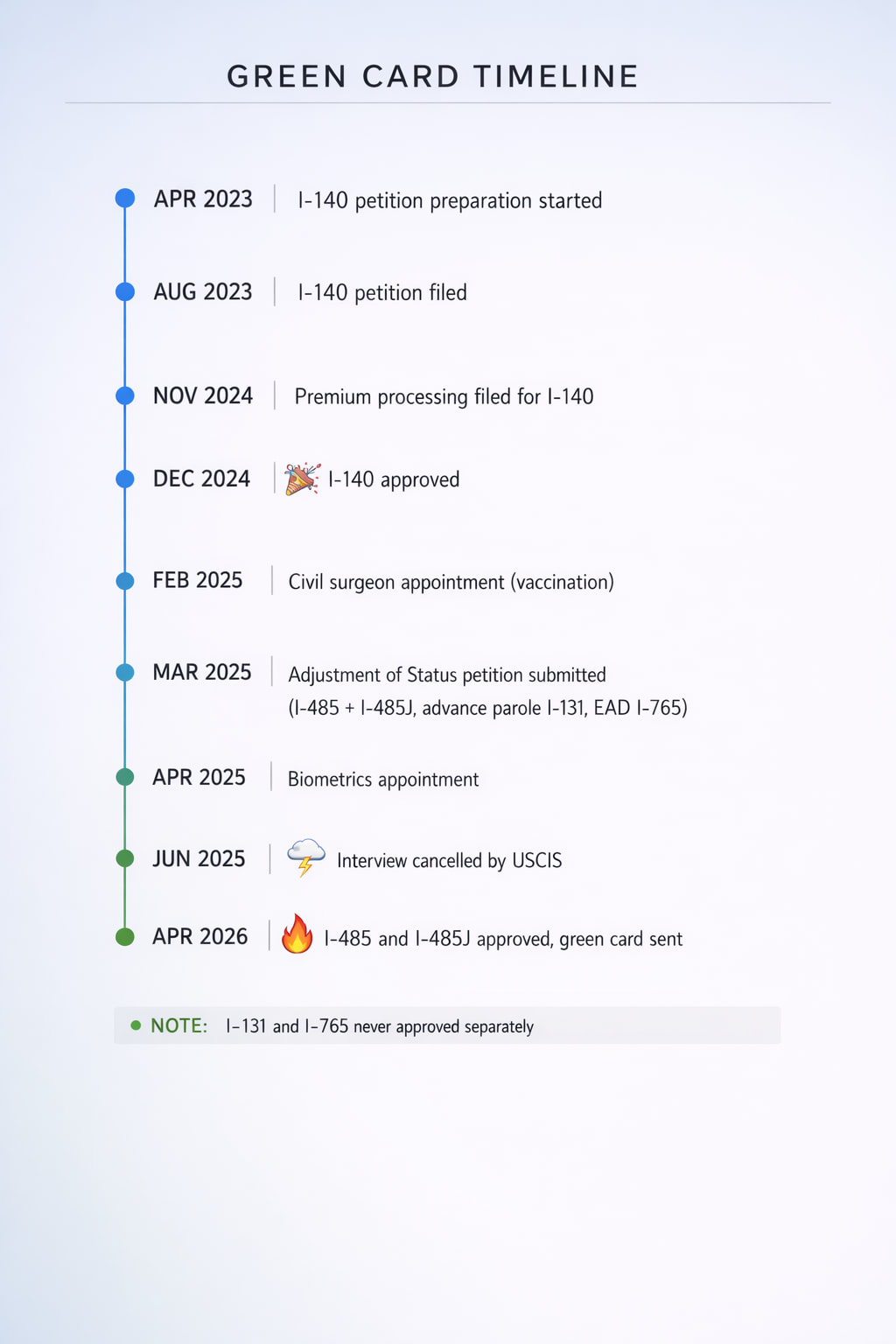 So if you’re waiting for your green card - hope this helps set some expectations, but overall, this timeline is more typical than it looks. Best of luck in your immigration journey, and feel free to reach out to me if I can be of any help!